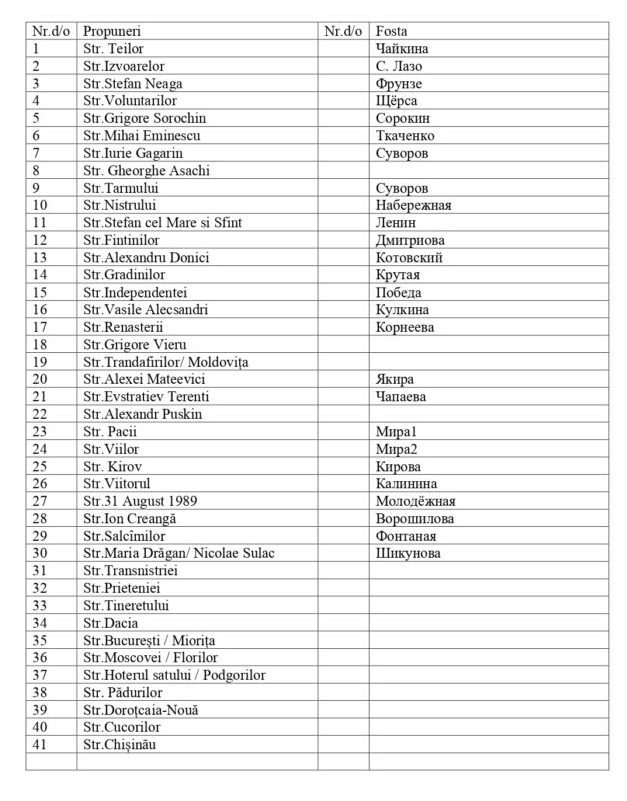 Strada Kirov însă se va păstra pentru că ține de memoria colectivă a sătenilor care au lucrat în kolhozul ”Kirov”.