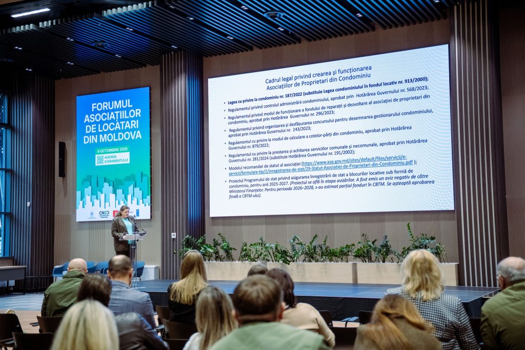 Astăzi la Chișinău a avut loc Forumul Asociațiilor de Locatari din Moldova. Evenimentul a evidențiat importanța procesului de reorganizare a Asociațiilor de Proprietari din Condominiu (APC) și promovarea soluțiilor de eficiență energetică, facilitând accesul la finanțare pentru renovarea blocurilor locative. Forumul a reunit peste 170 de participanți – reprezentanți ai autorităților publice, lideri ai asociațiilor de proprietari, experții, organizații internaționale.
