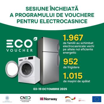 În această sesiune, familiile beneficiare au achiziționat cu ajutorul EcoVoucher-ului 952 de frigidere și 1.015 mașini de spălat rufe cu o clasă ridicată de eficiență energetică. Înlocuirea aparatelor vechi cu electrocasnice performante reduce consumul de energie și aduce economii la factura de energie electrică de cel puțin două ori.