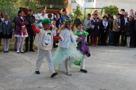Curtea liceului s-a transformat în după-amaiaza zilei de vineri într-o imensă sală de expoziţii. Fiecare clasă a amenajat o masă cu darurile toamnei, prăjituri, plăcinte tradiţionale, toate de vânzare, pentru că organizatorii au anunţat că va fi un iarmaroc caritabil, iar banii colectaţi vor fi donaţi familiilor a trei colegi din şcoală, care au mare nevoie de aceste surse. După ce au întâmpinat oaspeţi, cu pâne şi sare, elevii au prezentat un concert dedicat toamnei, au demonstrat cum ştiu mai bine să confecţioneze şi să prezinte ţinute de „haute-couture” din materiale reciclabile sau crengi, pănuşi de porumb, foi de varză şi hamei, au dansat şi au cântat la intrumente muzicale. Careul a luat sfârşit cu o horă, după care toată lumea a făcut cumpărături, contribuind astfel pentru cauza anunţată.