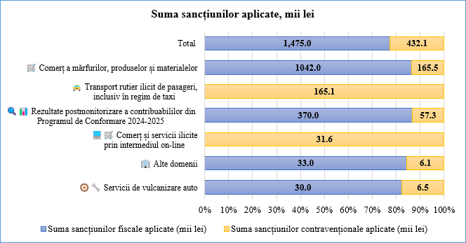 • Sancțiuni fiscale aplicate: 1 475,0 mii lei
