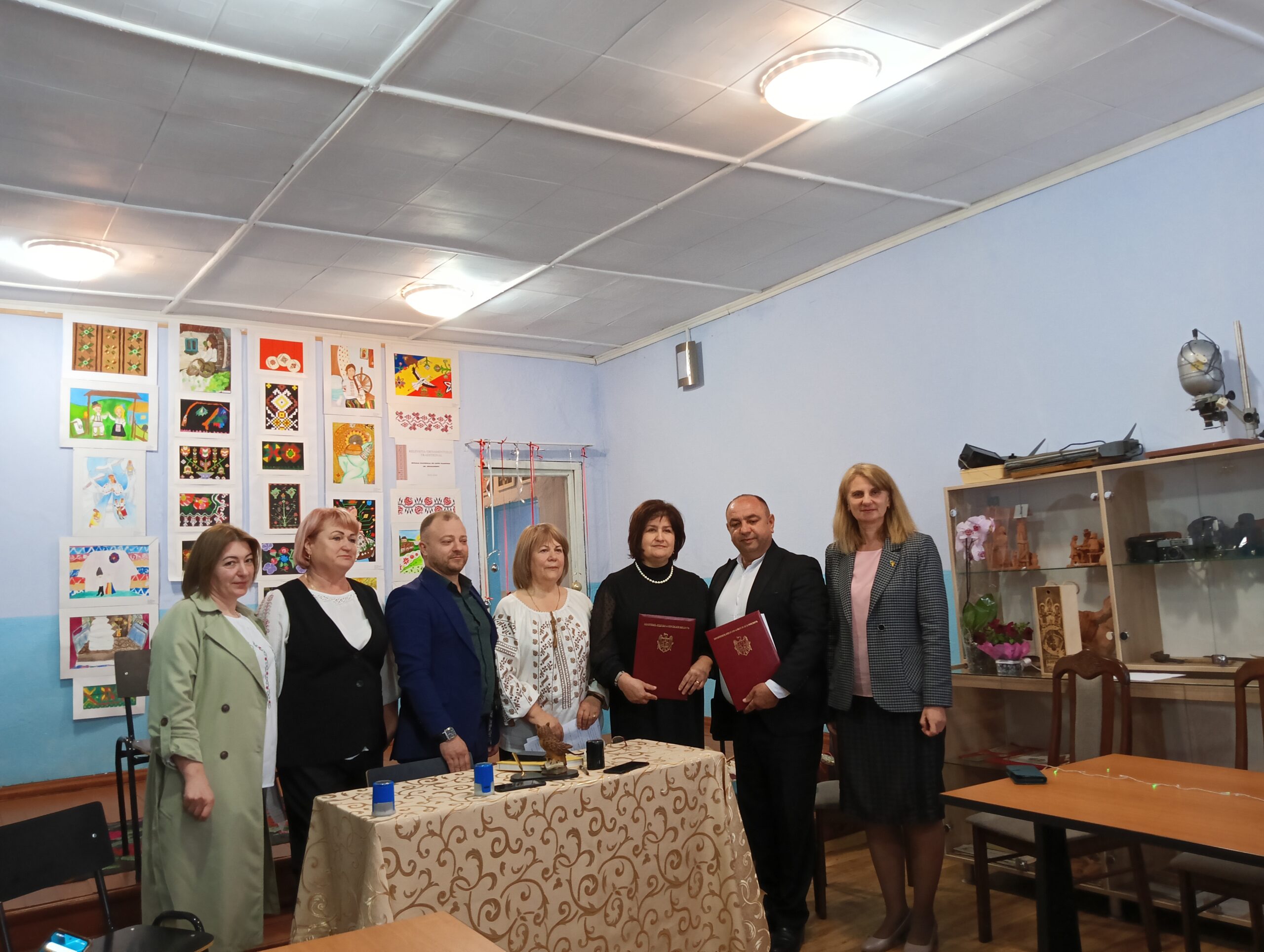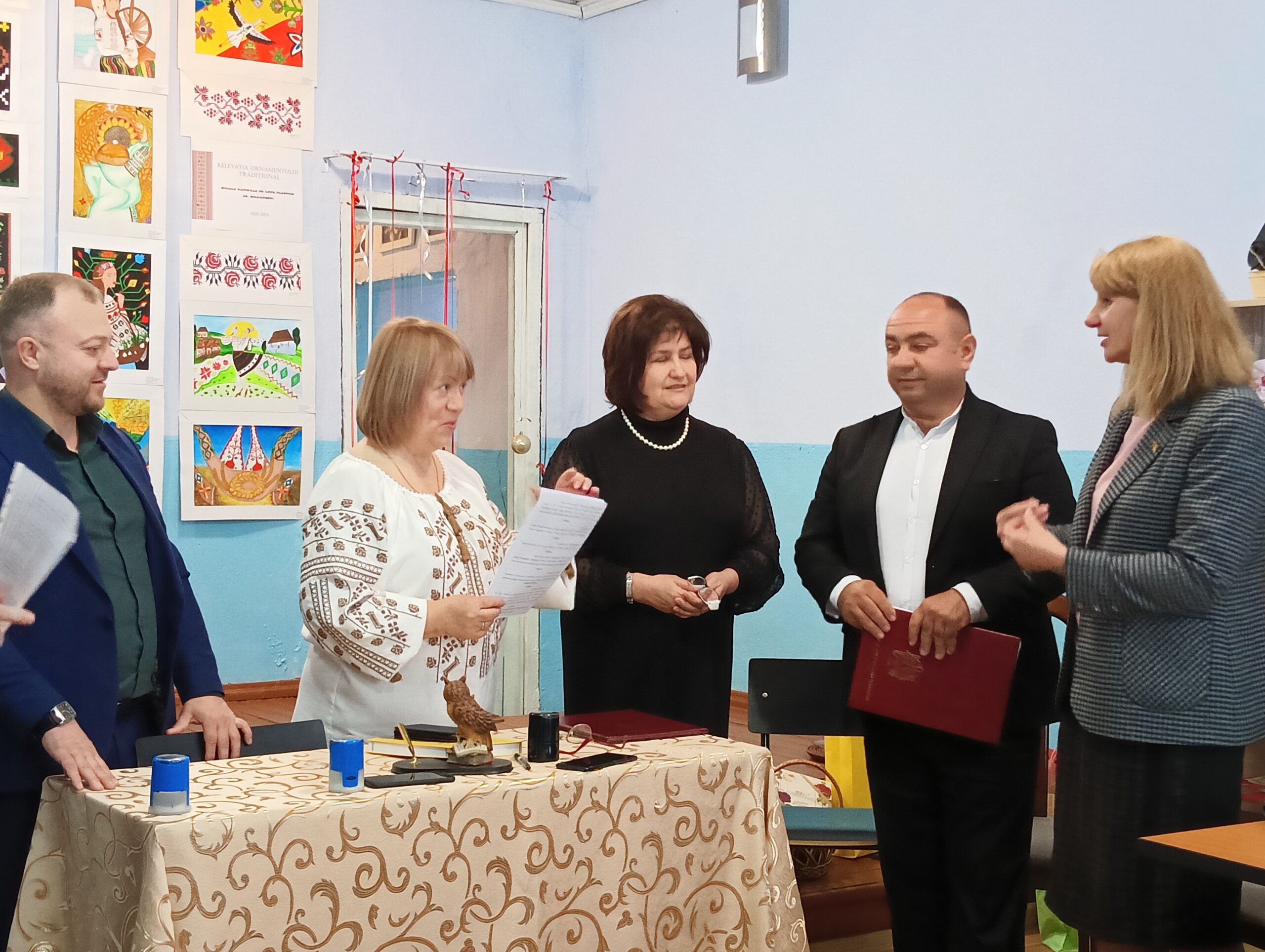 Apoi a urmat ceremonia semnării Acordurilor de colaborare. Muzeul din Șoldănești s-a înfrățit cu muzeul din Boșcana, fapt legiferat prin ștampilă și de primarul Vadim Groza, care se mândrea că dna Maria Nasu i-a fost și profesoară.