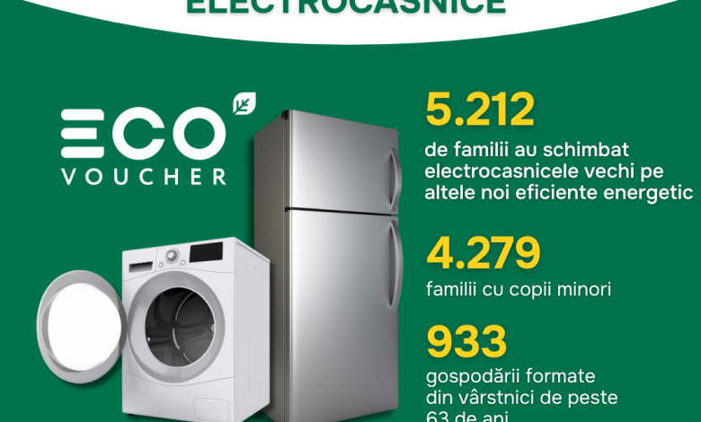 Fiecare voucher, în valoare de 6.000 de lei, a acoperit până la 70% din costul unui aparat electrocasnic nou. În această sesiune, cele 5.212 familii beneficiare au achiziționat cu ajutorul EcoVoucher-ului 2.630 de frigidere și și 2.582 mașini de spălat rufe cu o clasă ridicată de eficiență energetică. Prețul mediu al aparatelor achiziționate în baza EcoVoucher-ului a fost de 11.752 de lei.
