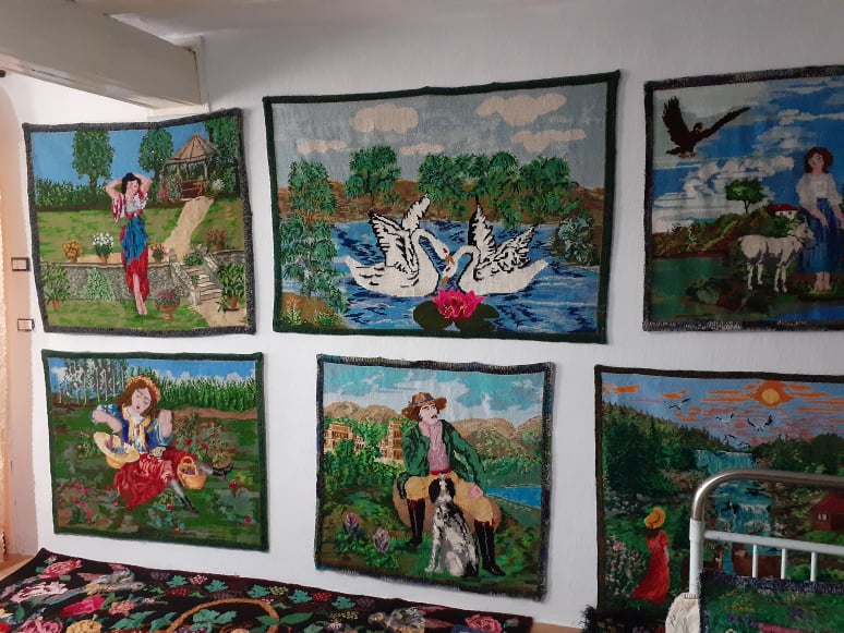 Pentru a face văzut rodul muncii, dna Ana Mantaluță a rezervat o cameră din casă pe care a decorat-o cu broderii. Acolo e locul ei pentru alinare și admirație pentru vizitatori.