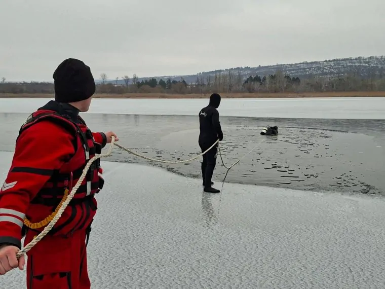 Scafandrierii din cadrul Inspectoratul General pentru Situații de Urgență au intervenit pe Lacul Ghidighici, unde a fost depistat un autoturism prăbușit sub gheață.