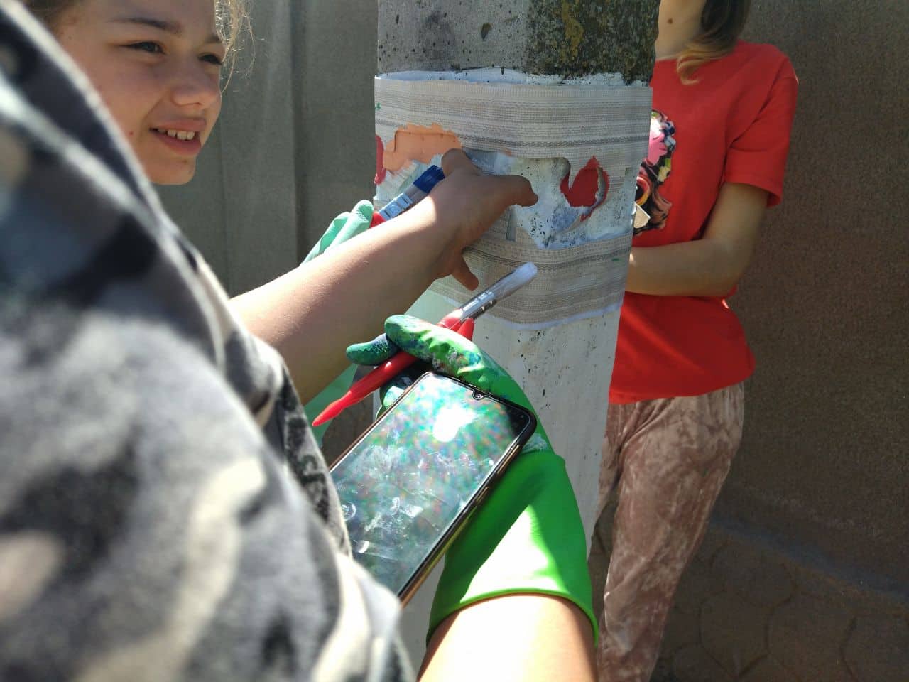 În imagini: elevii cl. VI din gimnaziul Oxentea au adăugat un pic de culoare pilonilor din satul natal