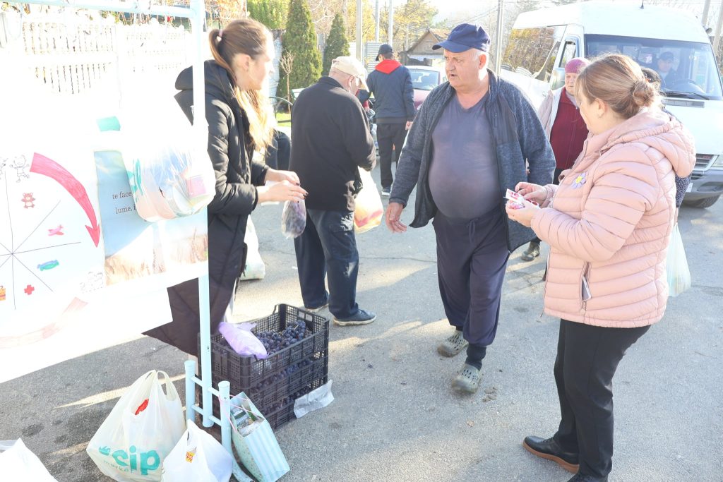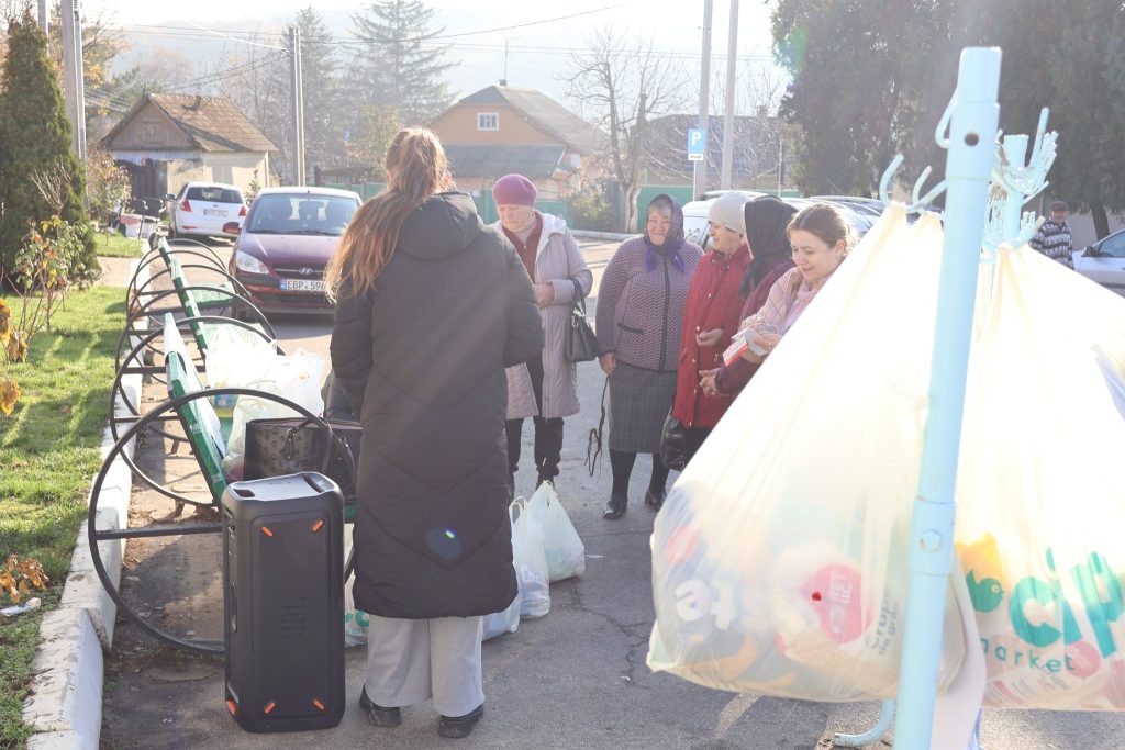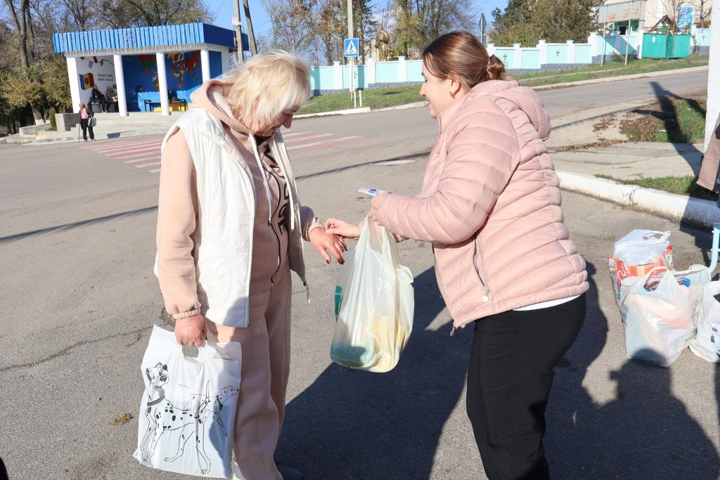 „Am lucrat 25 de ani în kolhoz, la tutun, da după ce s-a terminat kolhozul, am lucrat la bază de odihnă a unei uzine, 18 ani în calitate de paznic. În acest an, în primăvară, abia mi-a crescut pensia la 3300 lei, la 43 de ani lucrați, până atunci am avut 2300. Degeaba ne-am chinuit și ne-am calicit. N-ar trebui să merg eu încă în cârjă, că nu am nici 65 de ani, dar am început a lucra de la 15 ani…” – spunea dna Natalia, o altă beneficiară a acțiunii „Roata bunătății”, care a trecut pe alături, după ce a fost la oficiul poștal să-și primească pensia.