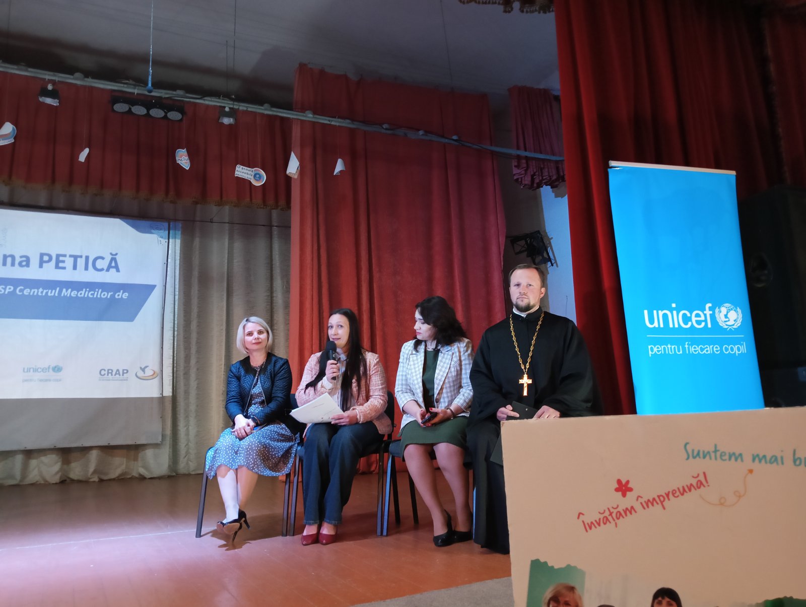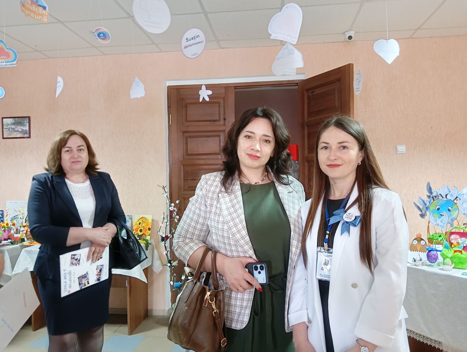 În timp de specialiștii întruniți în sala mare a Casei de Cultură Coșnița dezbăteau aspectele ce țin de educația inclusivă, în incinta Bibliotecii Publice, un grup de copii din Coșnița, Doroțcaia, Holercani confecționau mesaje colorate pentru cei prezenți. Lucrau în echipă și reflectau veridic sloganul: „Învățăm împreună”.